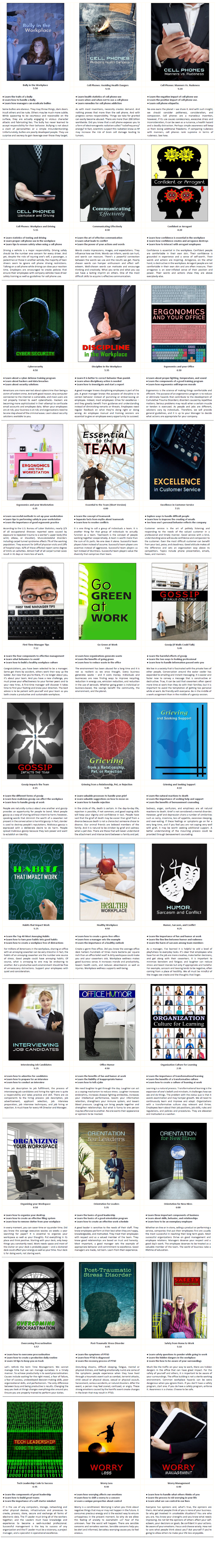 The Employee Excellence Series contains 33 powerful short films that HR administrators want to see most. Though short in length, the titles are packed with business secrets and valuable tips. Employees will learn a myriad of soft skills to create a congenial, efficient, and productive workplace.