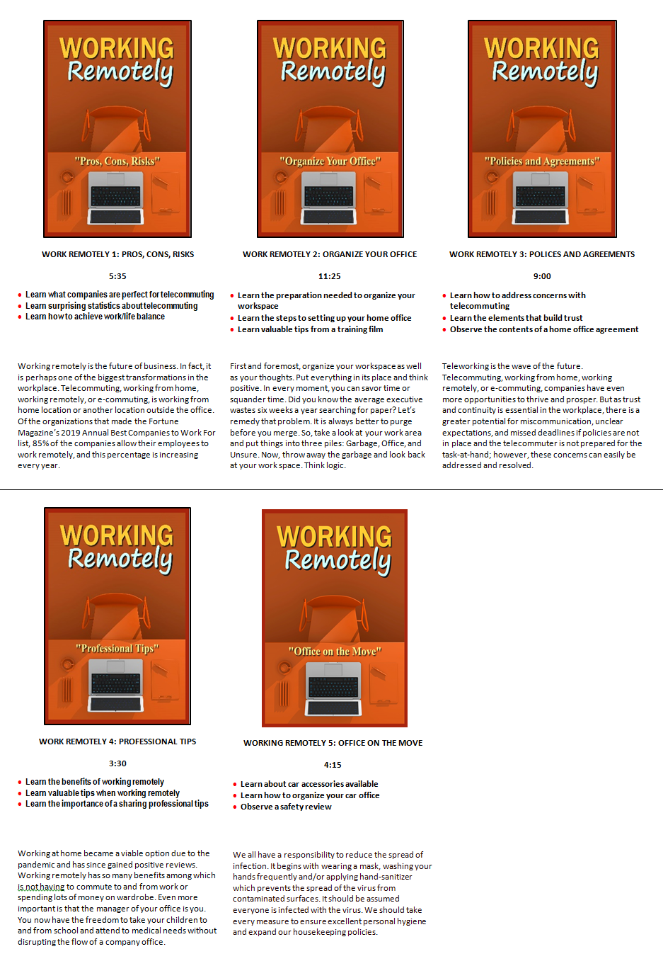 Company sustainability relies on their ability to change. Well, change has a new component: Working Remotely. Experts predict we won't go back to normal. We will go forward to a new normal that will reduce costs, increase productivity, and improve employee well-being. Improvements in technology have paved the way for work/life balance. No more timely commuting and workplace distractions. Achieve optimum productivity, performance, engagement, retention, and profitability. Valuable templates are included with the project.